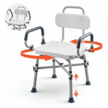 VEVOR draaibare douchestoel met armleuningen en rugleuning, draagvermogen tot 180 kg, draaibare badstoel voor douchecabine, in hoogte verstelbare badstoel voor senioren en mensen met een beperking