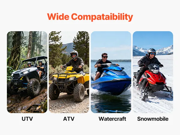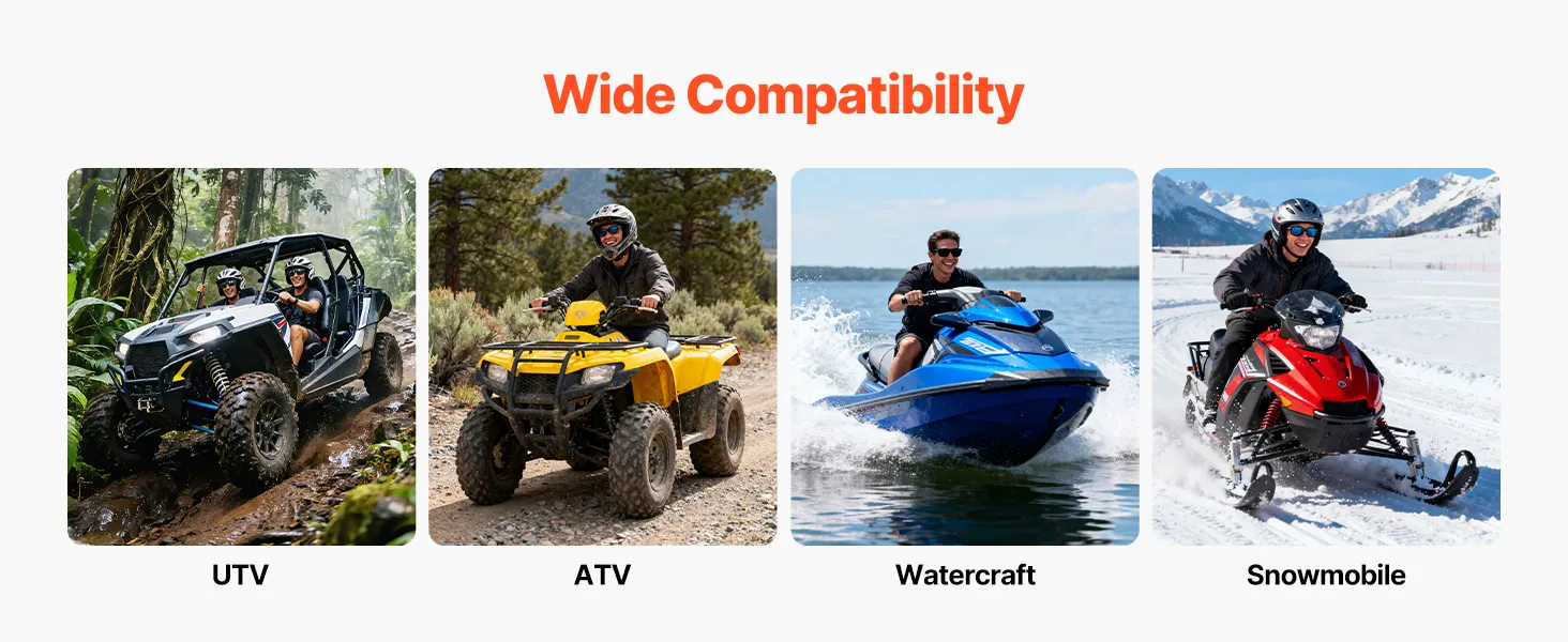 Dankzij het fraaie ontwerp en het compacte formaat neemt deze 12V-splitlaadset weinig ruimte in beslag. Hij past gemakkelijk in de beperkte binnenruimte van diverse voertuigen zoals UTV's, ATV's, jetski's, sneeuwscooters, enz.