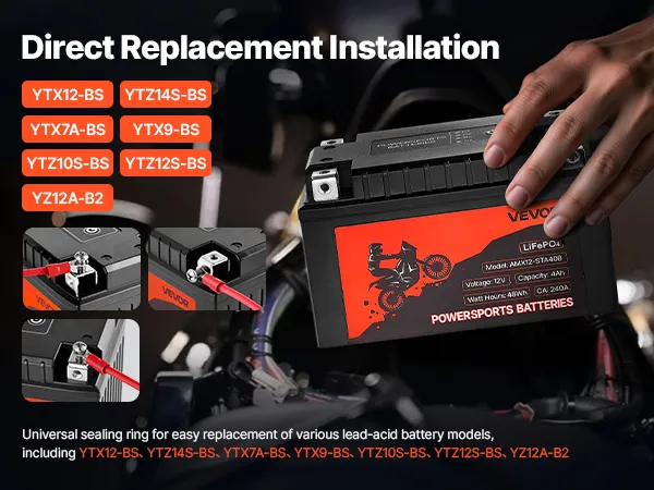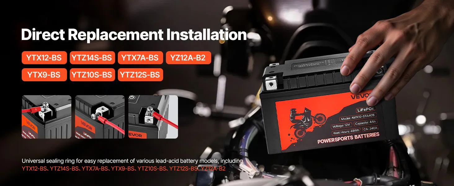 Brede compatibiliteit: Deze motoraccu is geschikt voor veel loodzuuraccu's, zoals de YTX12-BS, YTZ14S-BS, YTX7A-BS, YTX9-BS, YTZ10S-BS, YTZ12S-BS en YZ12A-B2, waardoor hij compatibel is met de meeste motormerken op de markt. Klaar voor gebruik op uw motor.