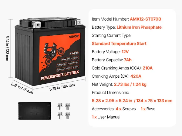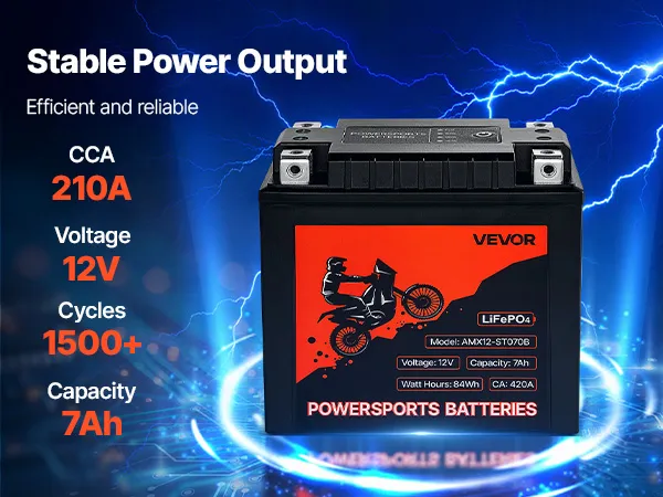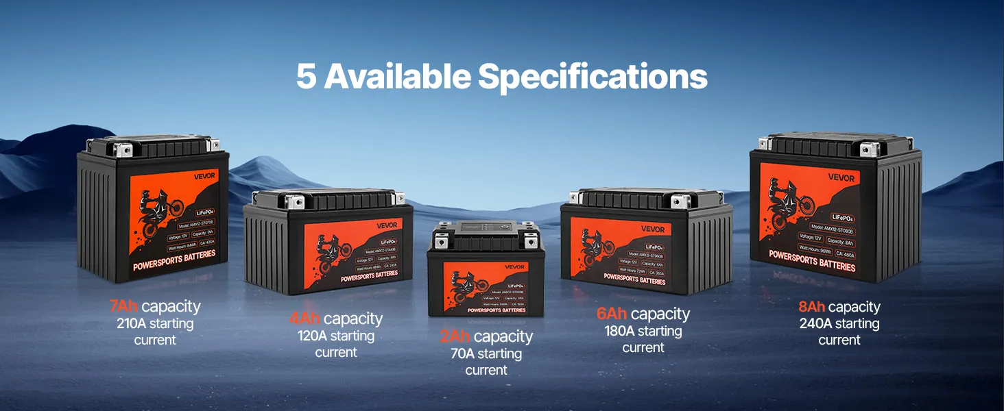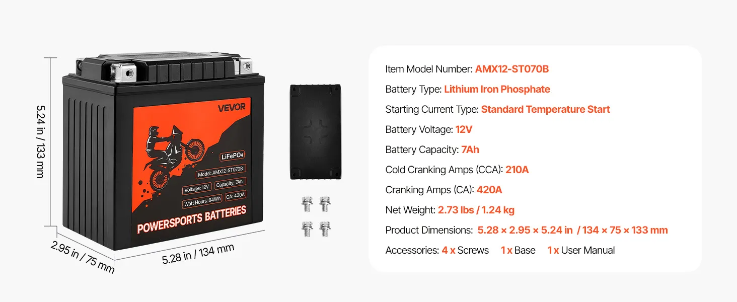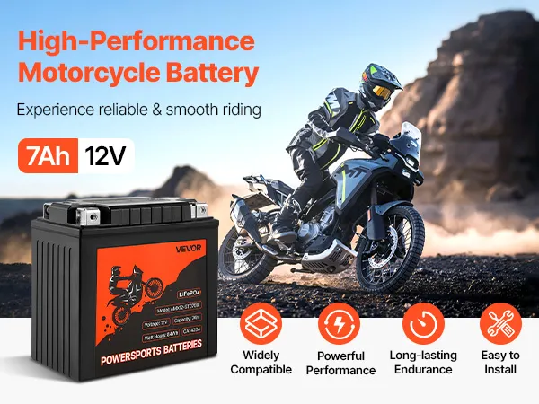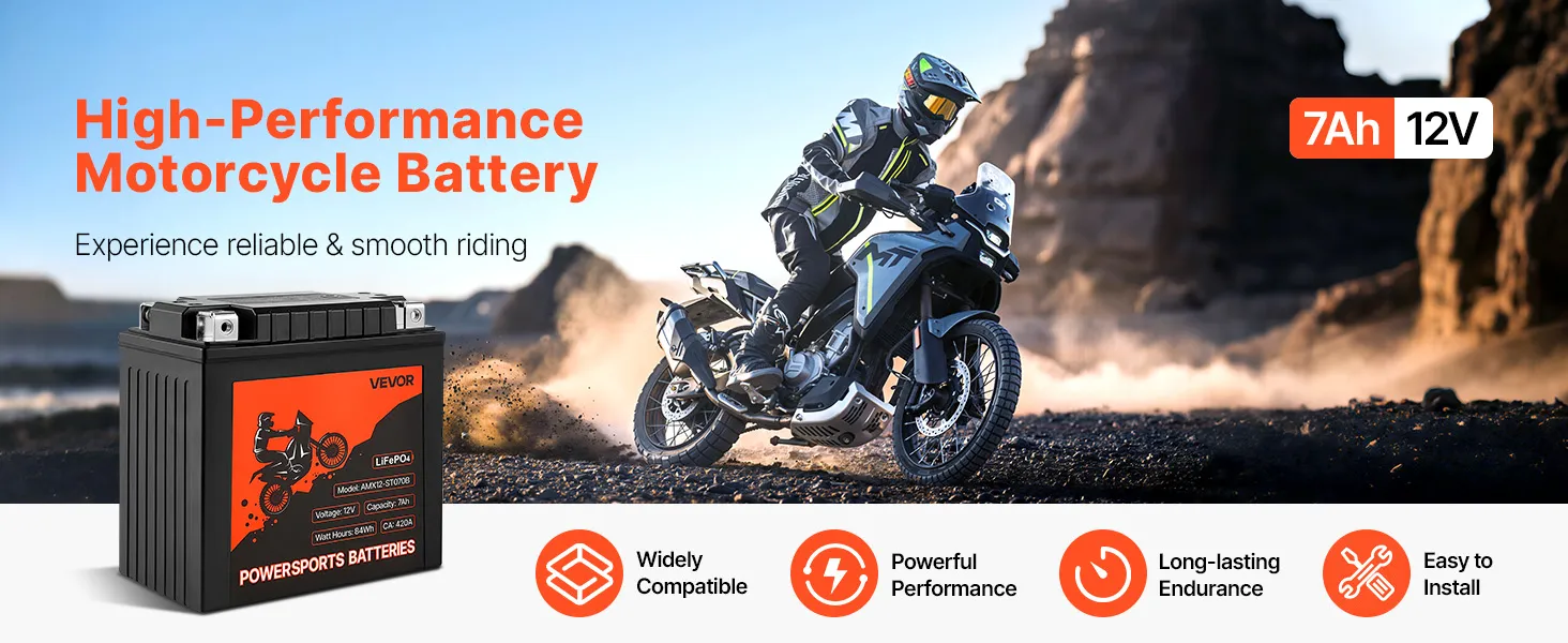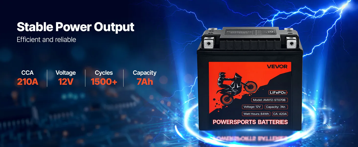 VEVOR Motorfietsaccu, 12 Volt 7 Ah, LiFePO4 Lithium Powersports Accu, Onderhoudsvrij en Krachtig, Geschikt voor ATV, Motorfiets, Jetski, Scooter, UTV en Meer