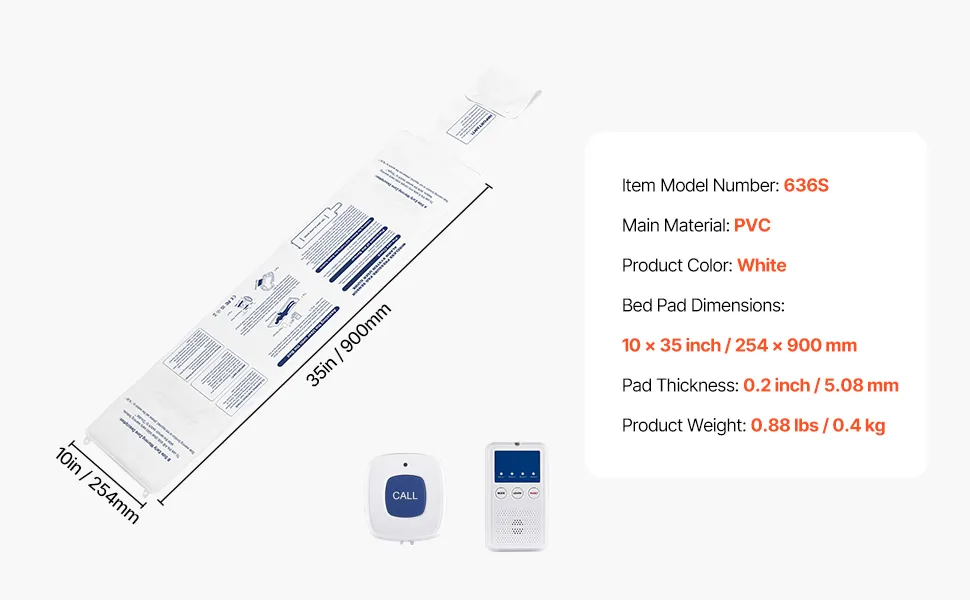 Dit vroegtijdige waarschuwingssysteem voor bedden beschikt over een sensormat van 254 x 889 mm en maakt betrouwbare bewaking van ouderen en patiënten mogelijk. Uitgerust met een oproepknop, pager en een zendbereik tot wel 91 meter kunnen zorgverleners tijdig worden gewaarschuwd en wordt het valrisico van de patiënt tot een minimum beperkt.