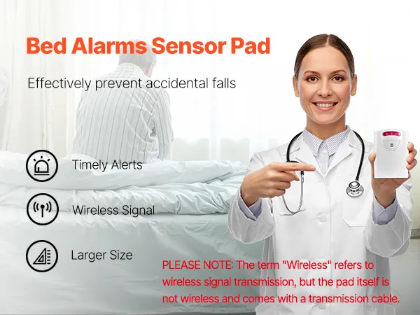 This bed alarm system for elderly features a 14 x 30-inch bed sensor pad, providing reliable monitoring for the elderly and patients. Equipped with a convenient pager and up to 300 ft wireless transmission distance, caregivers can receive timely alerts and minimize the patient's falling risks.