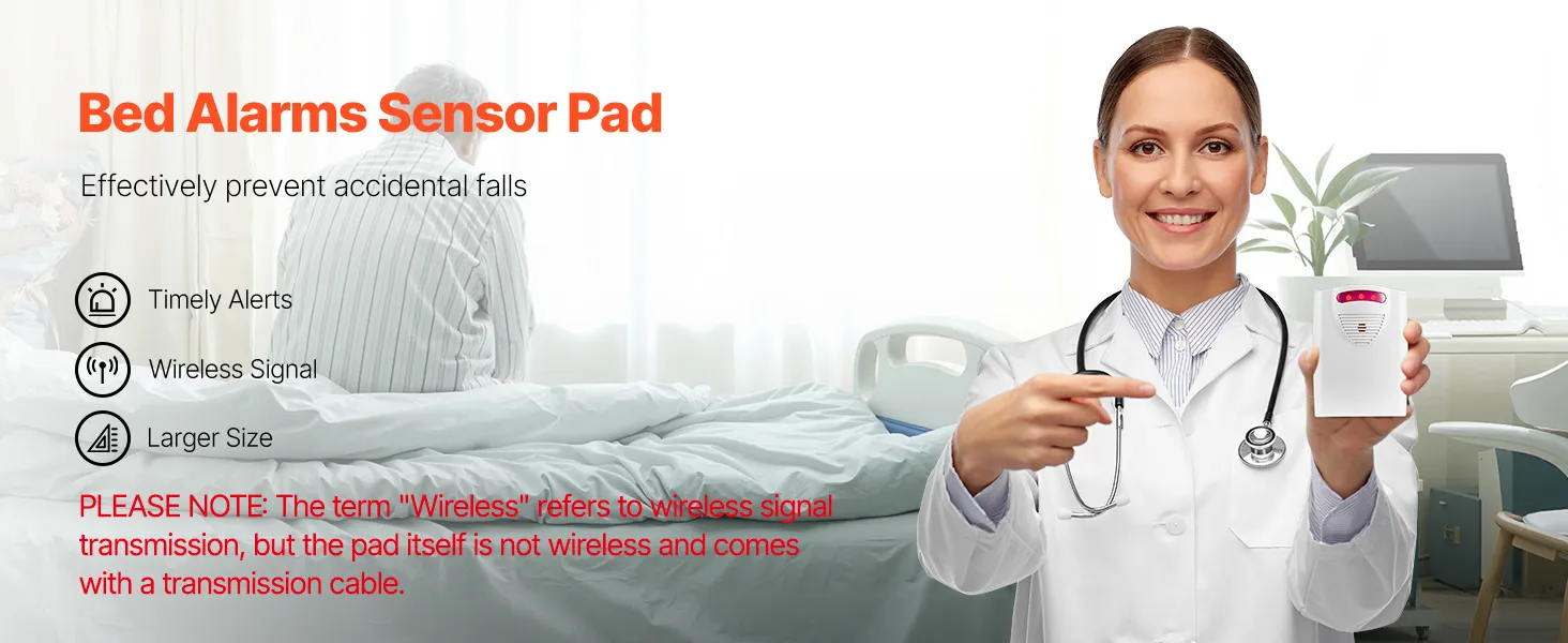 Peace of Mind: Equipped with high-sensitivity pressure sensors, our bed alarm system for elderly adults will detect after the patient leaving the bed and promptly transmit a wireless signal to the pager to trigger an alarm, allowing caregivers to respond quickly and reduce the risk of patient falls.