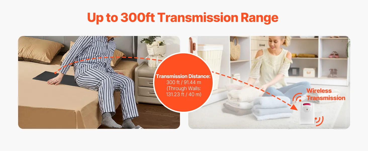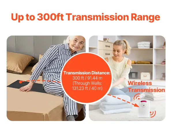 Stable Wireless Signal: With a 300 ft wireless transmission distance and up to 131 ft wall penetration, this bed alarms and fall prevention for elderly significantly enhances caregiving efficiency and minimizes the risk of patient falls.