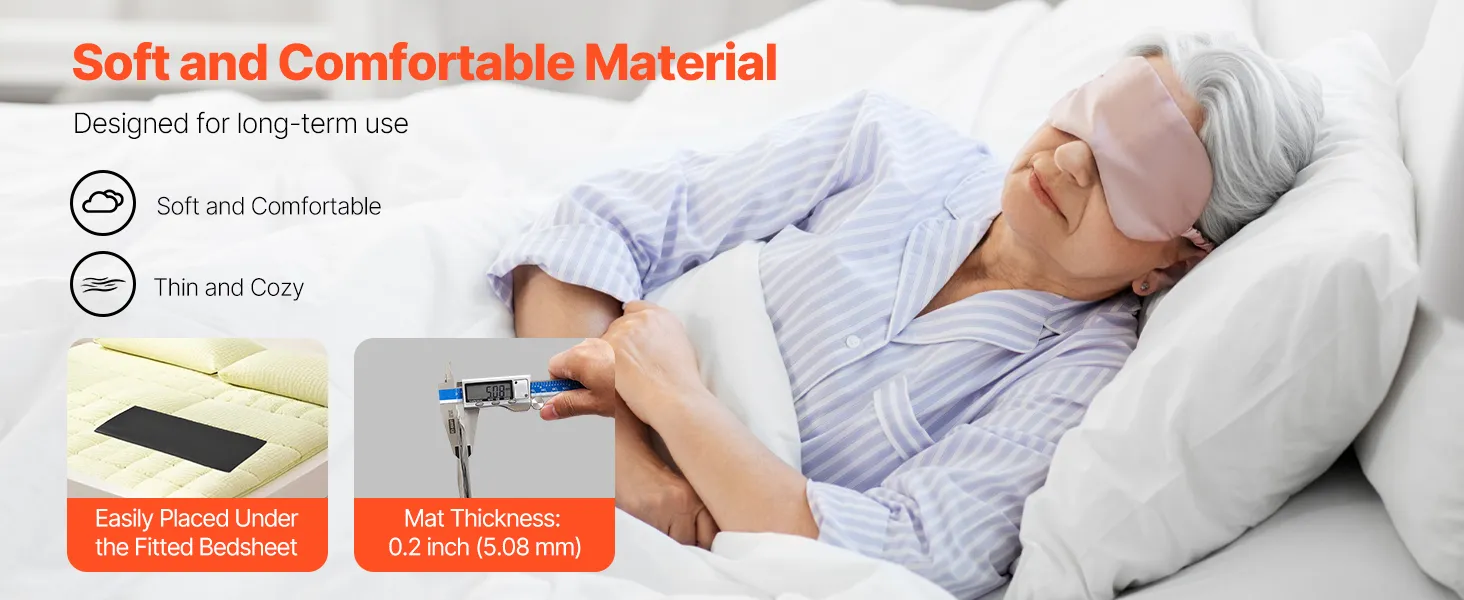 Our wireless sensor pad is only 0.2 inch thick, making it easy to place under the fitted sheets. (PLEASE NOTE: The term "Wireless" refers to wireless signal transmission, but the pad itself is not wireless and comes with a transmission cable.)