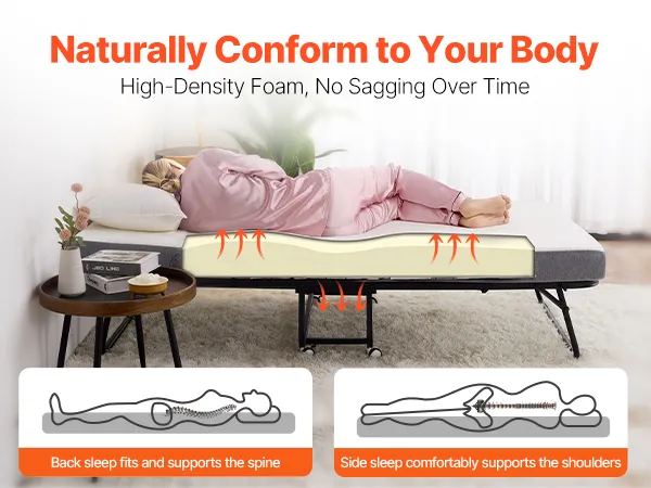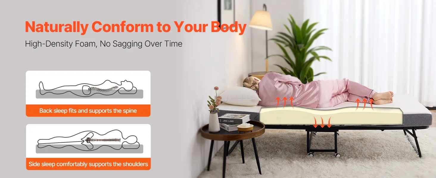 De opvouwbare matras is zacht maar toch ondersteunend en is gemaakt van schuim met een hoge dichtheid dat niet doorzakt. Het helpt uw wervelkolom in een rechte lijn te brengen en zorgt voor een rustgevende, comfortabele slaap.