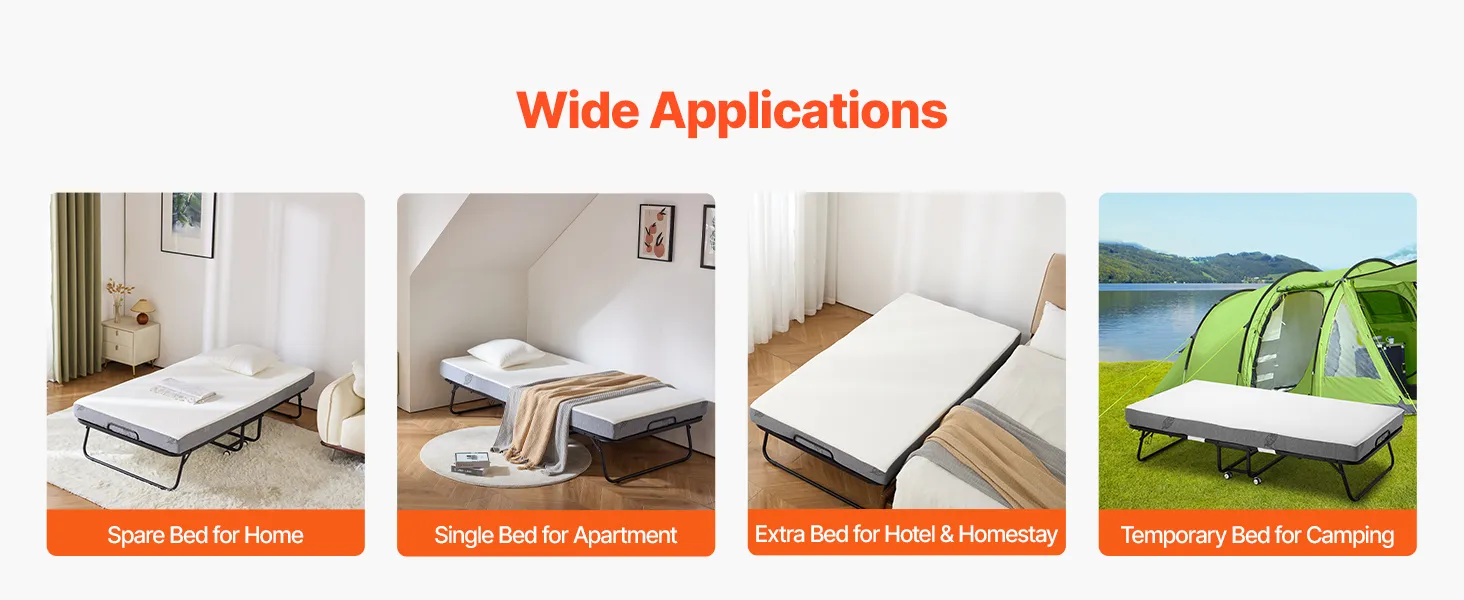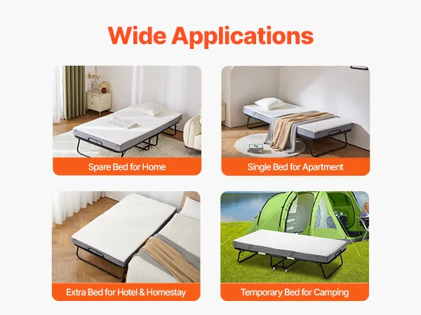 Of u nu een logeerbed voor thuis nodig heeft, extra slaapruimte voor een hotel of een bed voor een pension, dit draagbare bed is veelzijdig en voldoet aan uw tijdelijke slaapbehoeften.