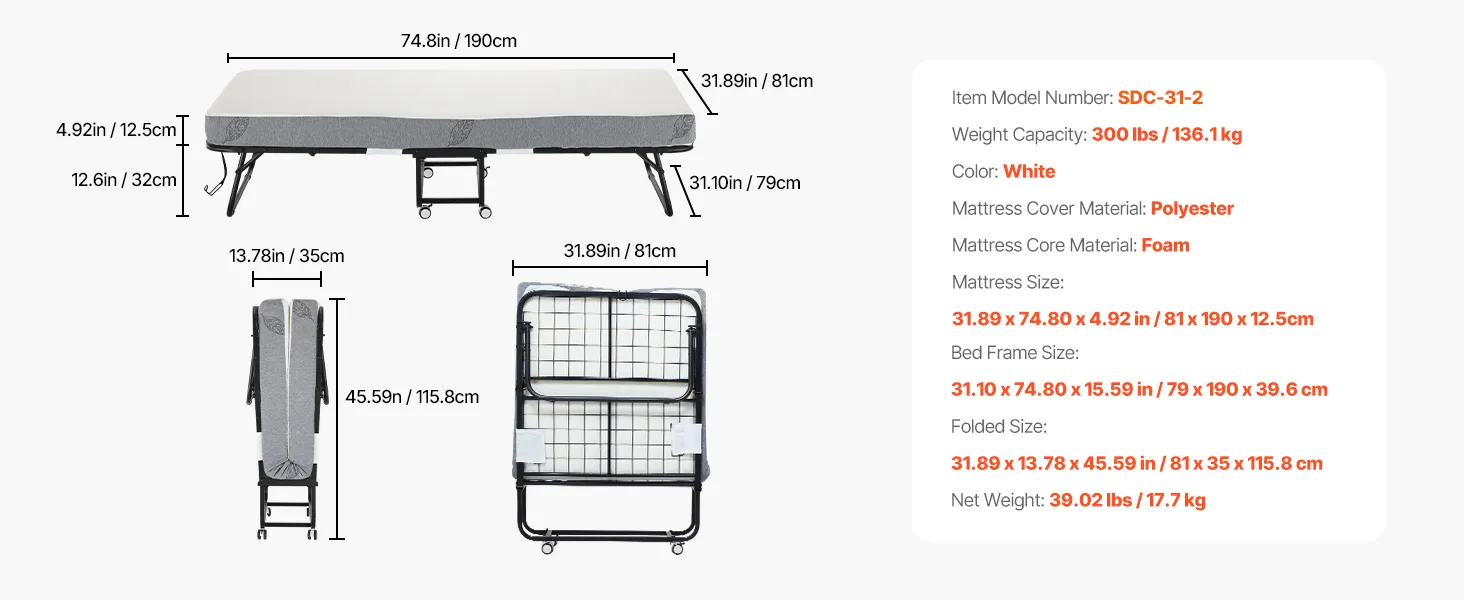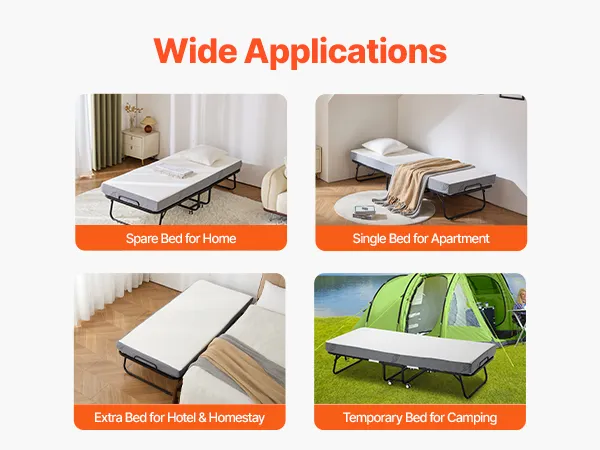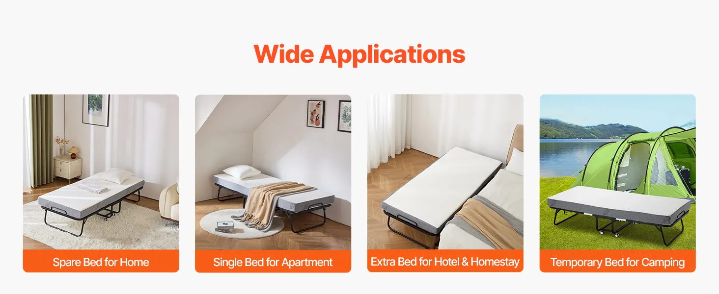 Of u nu een logeerbed voor thuis nodig heeft, extra slaapruimte voor een hotel of een bed voor een pension, dit draagbare bed is veelzijdig en voldoet aan uw tijdelijke slaapbehoeften.