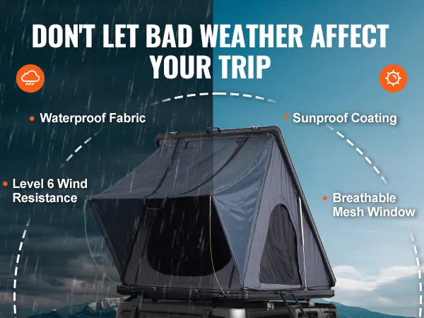 The aluminum hard shell is durable and impact-resistant, while the stainless steel support poles smoothly set up the rooftop tent in just 3 seconds.