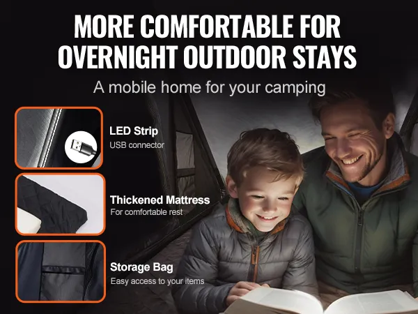 Enhanced Comfort Inside: Enjoy greater comfort during outdoor camping or overnight stays. The tent features multiple ventilation points, breathable mesh window, and a thick, non-deforming foam mattress for added comfort. It also includes an LED light for easy navigation at night.