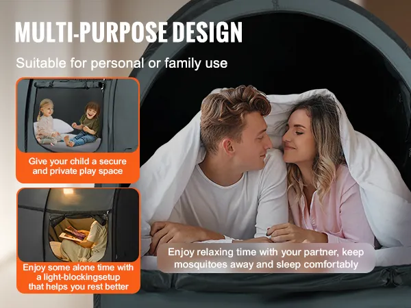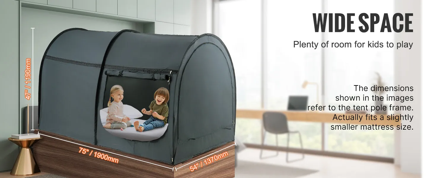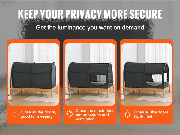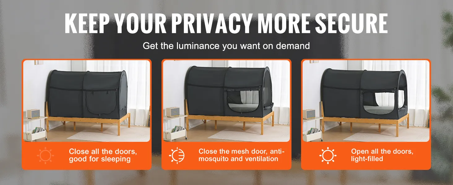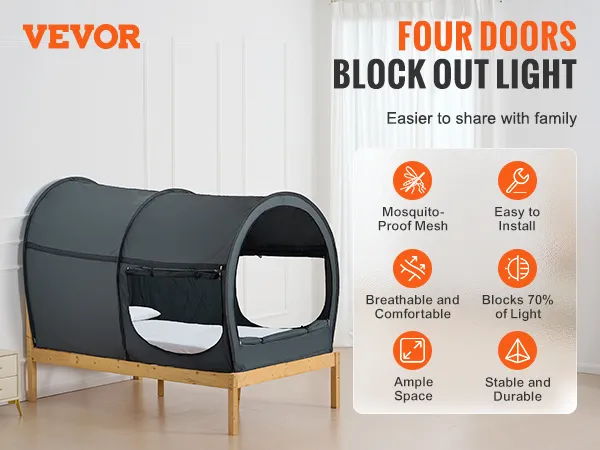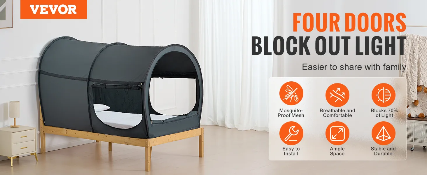 Lichtbescherming: deze bedtent is 1900 x 1370 x 1190 mm groot en blokkeert het licht om een gezellige, privéruimte te creëren in slaapzalen, gedeelde kamers of kantoren. Geniet van een meer ontspannen omgeving en een betere slaap, dag en nacht.