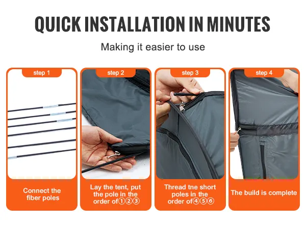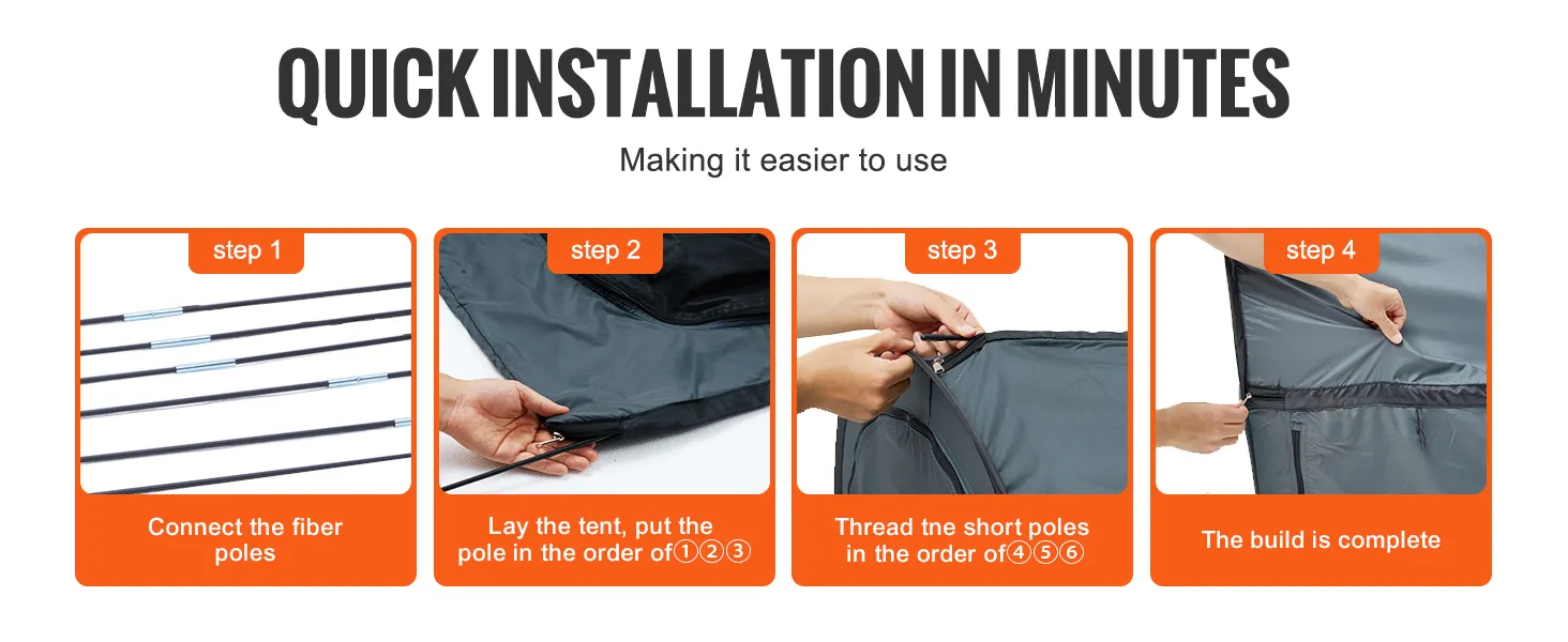 Een eenvoudig installatieproces bespaart u tijd en energie. In slechts een paar minuten richt u eenvoudig uw eigen privéruimte in, waardoor u sneller kunt genieten van de gezellige ruimte van de tent.