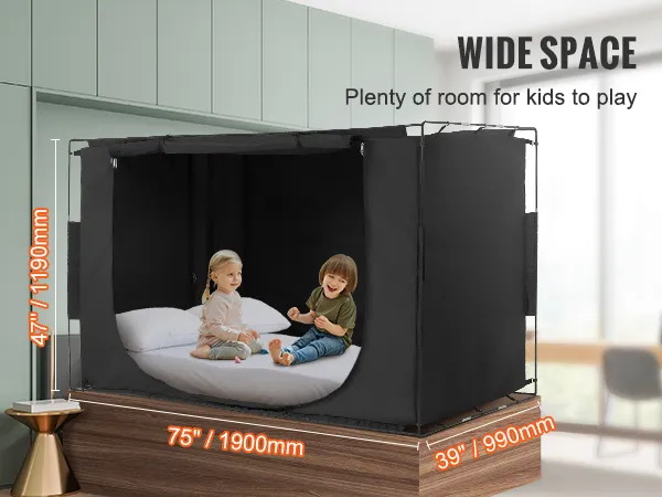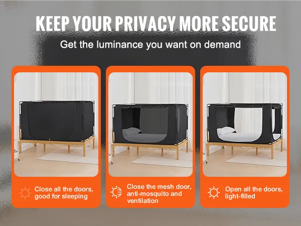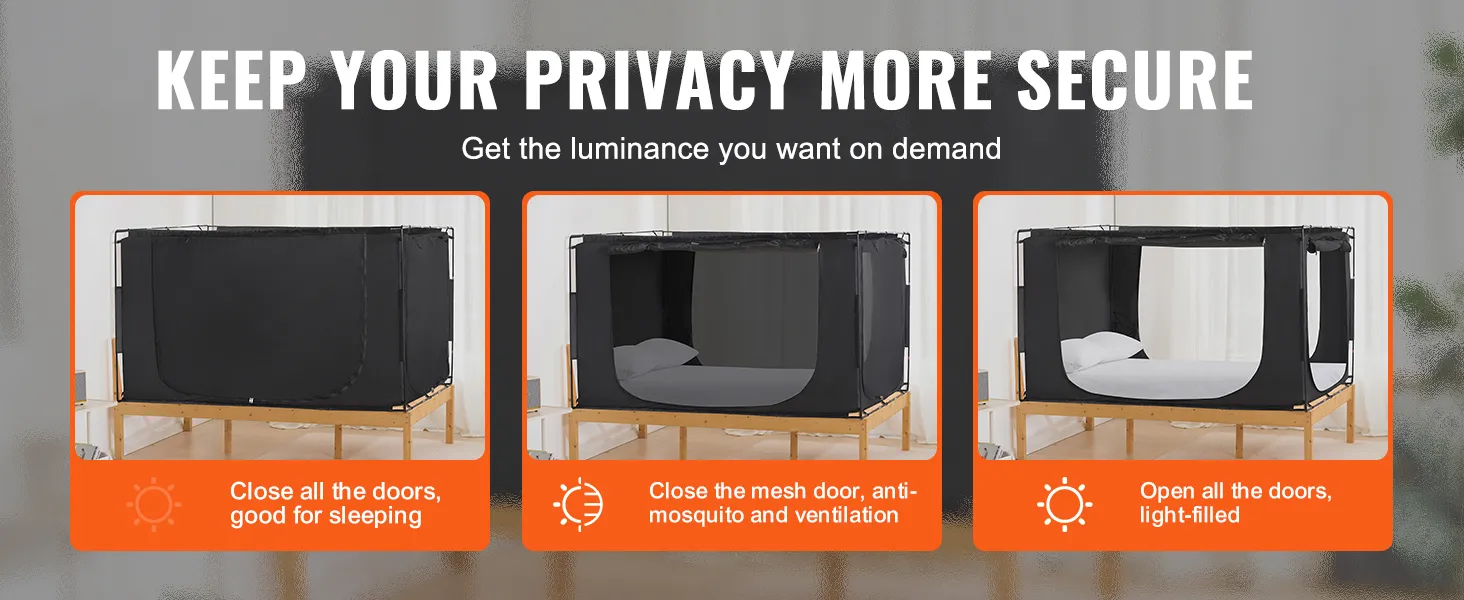 Blokkeert 70% van het licht: Deze bedtent is 1900 x 990 x 1190 mm groot en blokkeert 70% van het licht, waardoor een gezellige privéruimte ontstaat in slaapzalen, gedeelde kamers of kantoren. Geniet van een meer ontspannen omgeving en een betere slaap, dag en nacht.