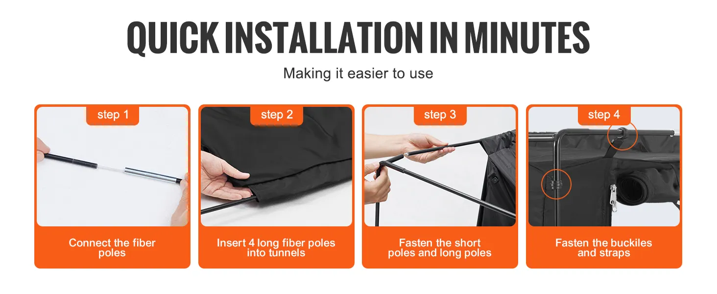 Een eenvoudig installatieproces bespaart u tijd en energie. In slechts een paar minuten richt u eenvoudig uw eigen privéruimte in, waardoor u sneller kunt genieten van de gezellige ruimte van de tent.
