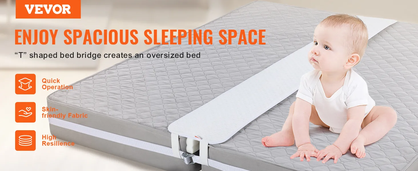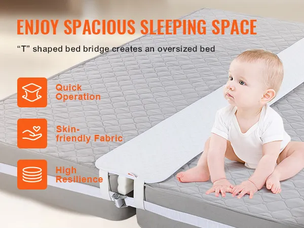 De bedbrug is gemaakt van huidvriendelijke stof en schuim met een hoge dichtheid en biedt stevige ondersteuning, waardoor hij niet in de kieren wegzakt. U kunt comfortabel slapen zonder dat u zich zorgen hoeft te maken dat baby's of huisdieren in de gaten vallen.