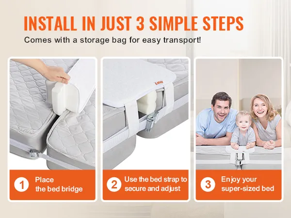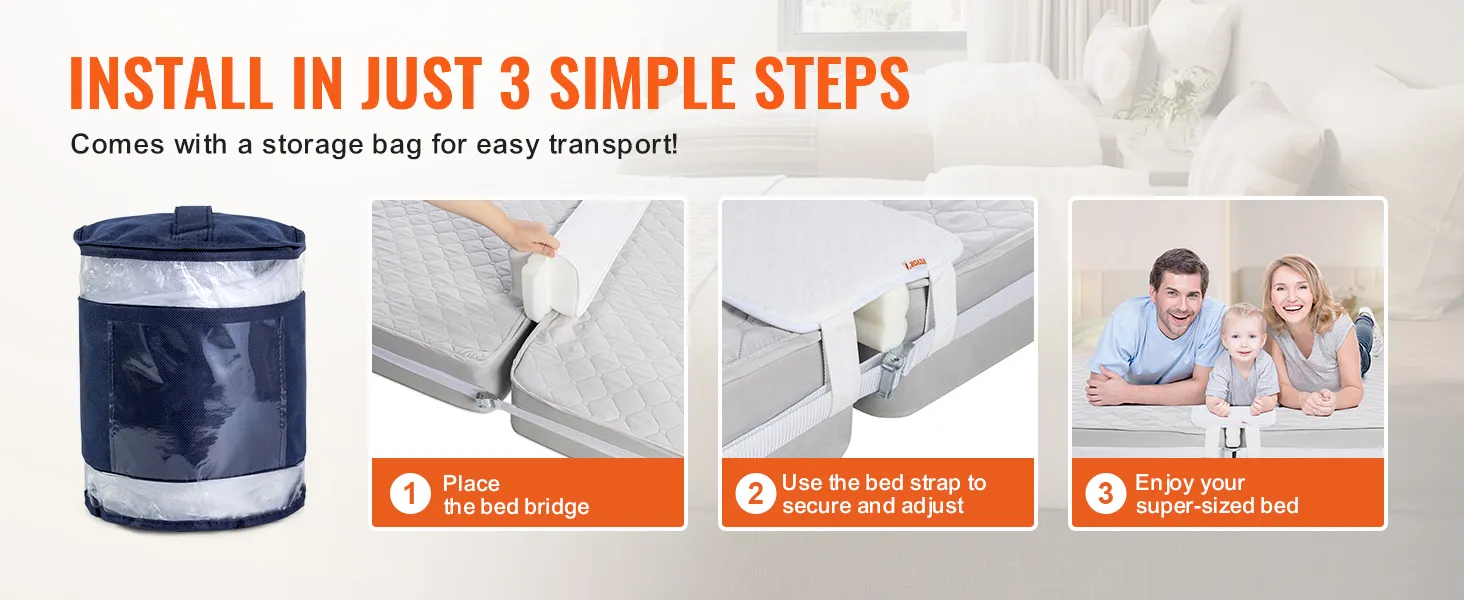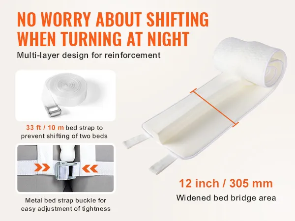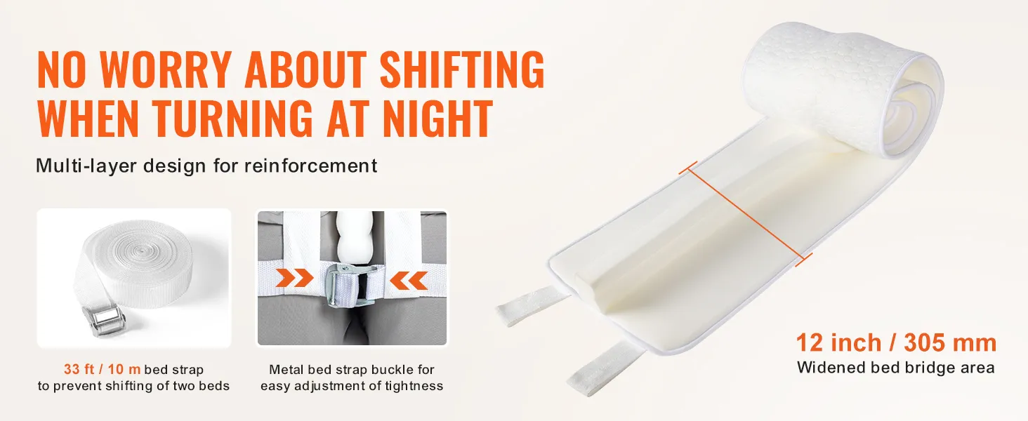VEVOR Bed Bridge voor Kingsize Bed Conversie Kit, Split Gap Filler voor Verstelbare Bedmatrasconnectoren, Matras Gap Filler met Metalen Gespband (1905 x 305 mm) Verticaal