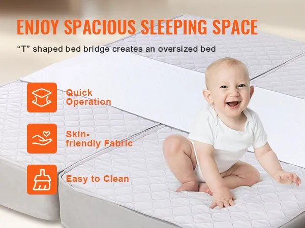 A Super-Sized Bed: The bed bridge easily connects two mattresses into one large bed, expanding your sleeping space with a simple and efficient solution.