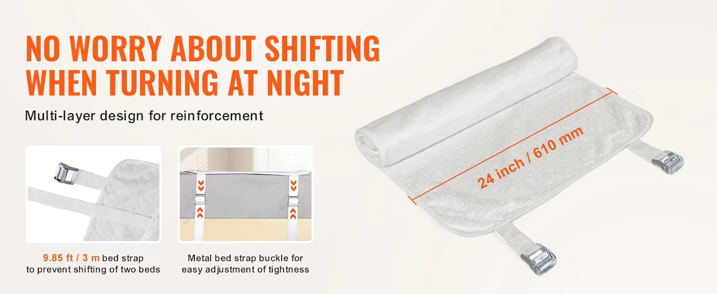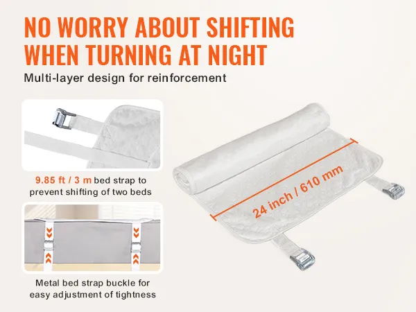 With the long bed strap, the mattress space filler keeps your mattresses securely in place, preventing shifting and providing solid support for a restful night's sleep.