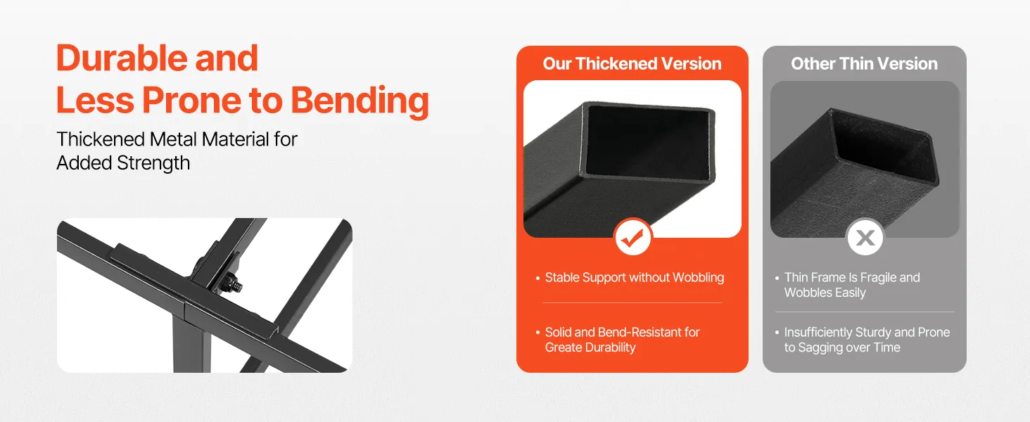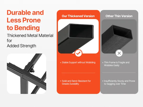 Onze bedbodems zijn gemaakt van verdikt metaal en bieden, in tegenstelling tot dunnere frames, een stabiele ondersteuning zonder te wiebelen, door te buigen of door te zakken.