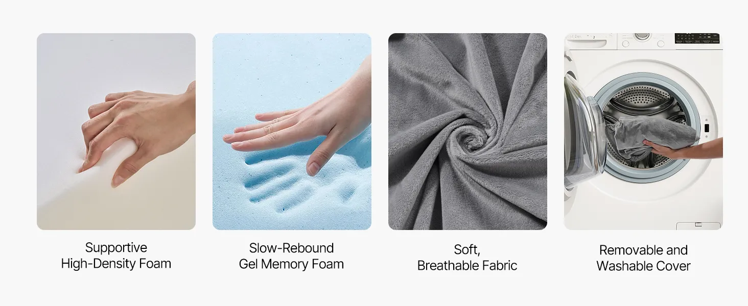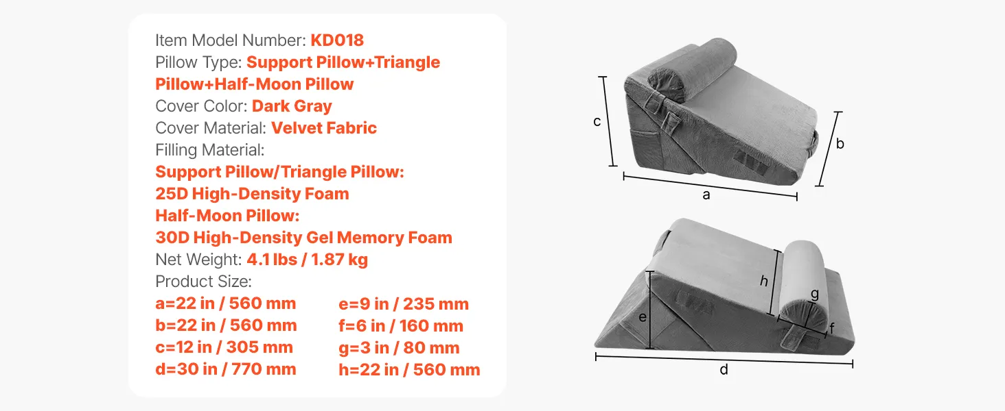 Made with high-density foam, slow-rebound gel memory foam, and a soft, breathable, washable cover, this headboard wedge pillow ensures better comfort and security.