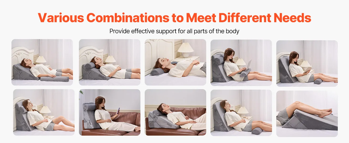 Multifunctional Design: This acid reflux pillow provides a variety of combinations and can be used for sitting, leaning, and lying. It is suitable for a variety of scenes, such as sleeping, reading, watching TV, etc., to meet your different comfort needs.