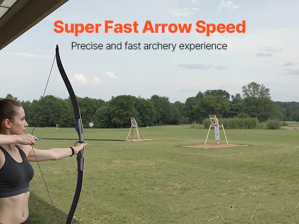 De recurveboogset met pijlen maakt supersnelle pijlsnelheden en nauwkeurig, moeiteloos schieten mogelijk. De pijlen vliegen soepel en snel, waardoor ze ideaal zijn voor zowel jagers als boogschutters die hun vaardigheden willen oefenen.