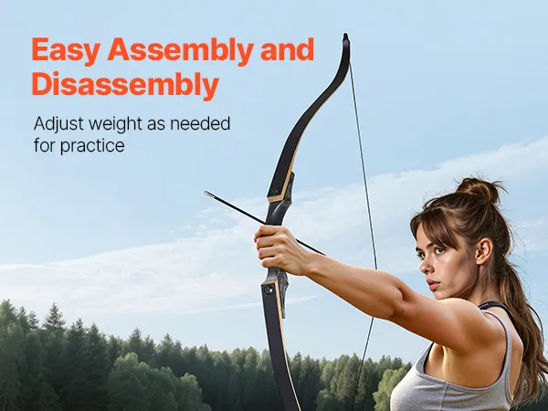 Eenvoudige montage en demontage: De opvouwbare recurveboog is eenvoudig en gemakkelijk te monteren en demonteren. Het gebruiksvriendelijke ontwerp vergemakkelijkt regelmatig onderhoud en transport, zorgt voor eenvoudige opslag en beschermt tegen beschadigingen.