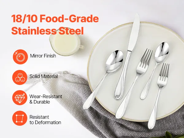 High-Quality Stainless Steel: Made from premium 18/10 stainless steel, this tableware cutlery set is durable, corrosion-resistant, and rust-proof with excellent balance. The smooth-edged design ensures comfort during use. Dishwasher safe and perfectly weighted, it is designed for long-lasting use