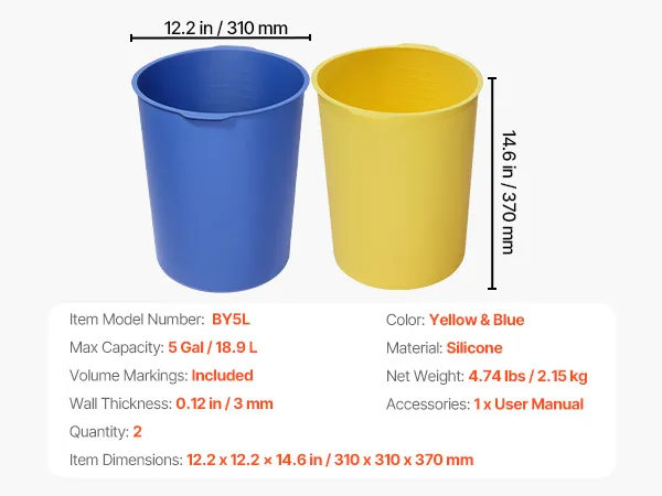 VEVOR 18,9 L siliconen emmervoering voor betonmenging, herbruikbaar, voor het mengen van dunne mortel, verf, beton en epoxyhars, emmervoering, voedselveilig, 2-pack, blauw/geel