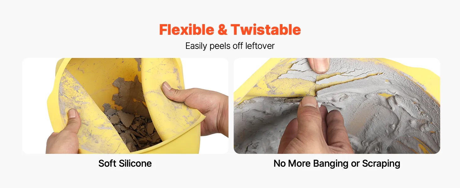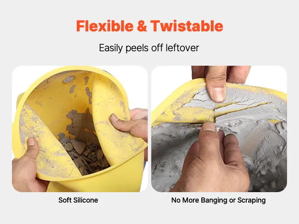 Duurzaam: Deze liner is gemaakt van 3 mm dikke siliconen met hoge dichtheid en is slijtvast, lekvrij en hittebestendig. Het gladde, antiaanbakoppervlak maakt het mengen gemakkelijker - geen plakkerig beton meer dat je vertraagt.