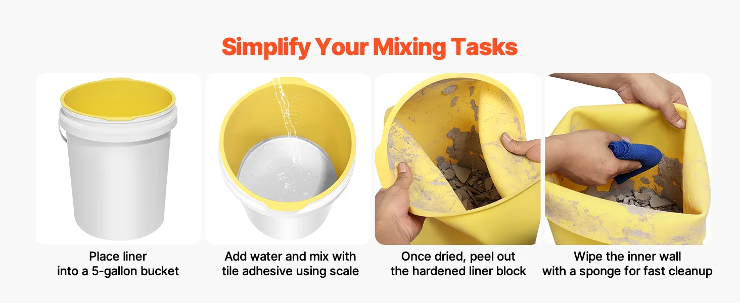 Veelzijdig: Een emmervoering is gemaakt van duurzaam siliconen en is robuust genoeg voor bouwmaterialen. Veelzijdige emmervoering voor het vullen van industriële producten op cementbasis, ideaal voor het mengen van diverse soorten verf, beton en mortel.