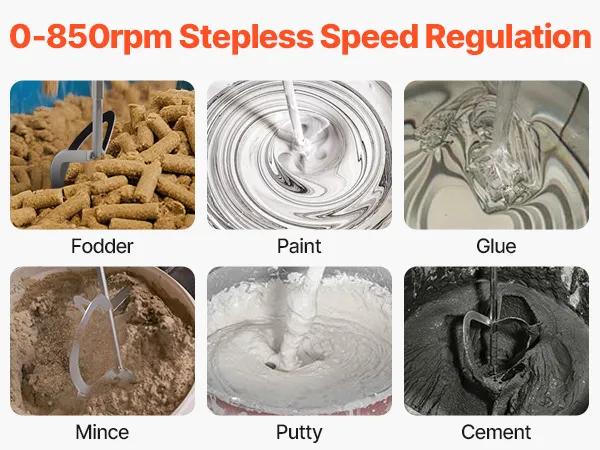 Variabele snelheidsregeling: Dankzij de traploze snelheidsregeling kan deze slurrymixer de rotatiesnelheid nauwkeurig afstemmen, van laag tot hoog. Of het nu gaat om lichte vloeistoffen of dikkere materialen, hij past zich aan uw mengbehoeften aan met consistente prestaties.