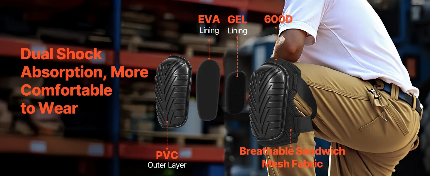 Soft and Comfortable: The combination of comfort gel and EVA foam design in these knee pads for work perfectly fits the curve of your knee, providing soft and comfortable support that helps relieve discomfort from long periods of kneeling.