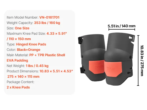 VEVOR Knee Pads for Work, Extra Thick Construction Knee Pads with Foam Cushion - Pro Protection & Comfort, Work Knee Pads|Gardening Knee Pads|Flooring Knee Pads| for Men & Women, Black and Orange