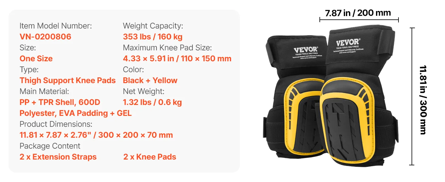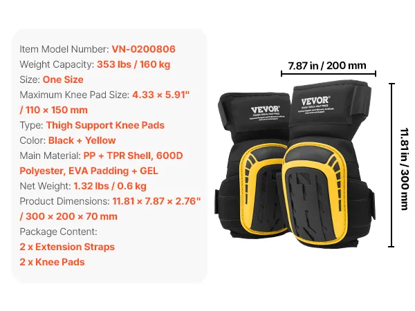 VEVOR Knee Pads for Work, Extended Heavy Duty Construction Knee Pads with 2 Extension Straps, Anti-slip Foam Gel Knee Pads, Men & Women, for Gardening Flooring Roofing and Cleaning, Yellow and Black