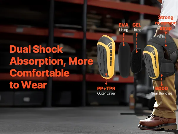 Thick Outer Shell: The sturdy PP outer shell and anti-slip TPR material of these construction knee pads effectively protect against impacts and wear, extending their lifespan and providing long-term protection for your knees.