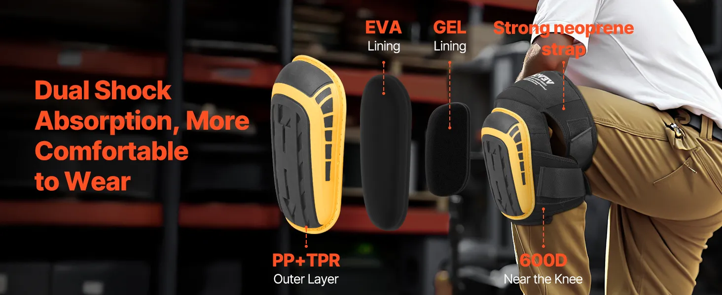 Double Stability: With reinforced SBR straps and a secure hook and loop fastener, these work knee pads ensure a snug fit, preventing slippage and offering extra stability for greater confidence while working.