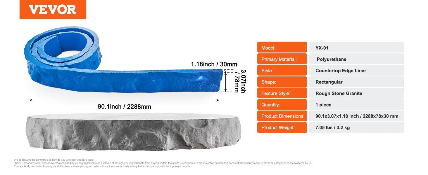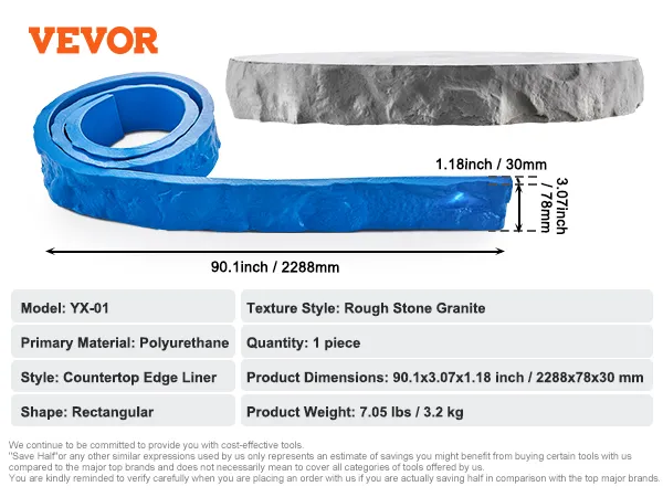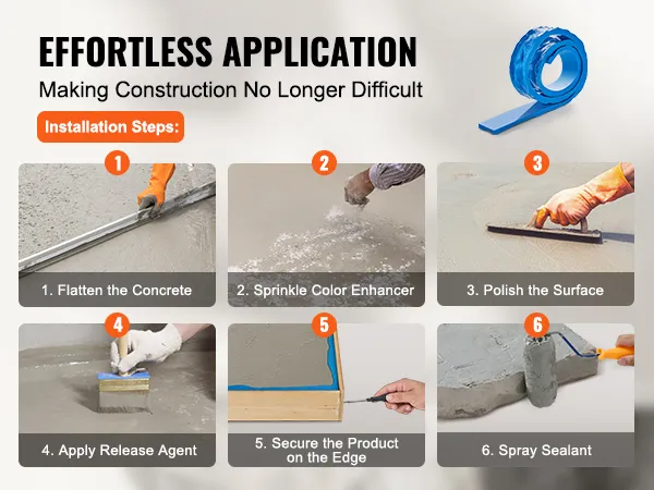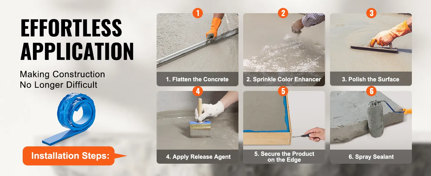Groot ontwerp: met een afmeting van 3 x 91 inch (B x L) bedekt het grote formaat meer betonoppervlak in één keer, waardoor sneller stempelen mogelijk is. Dankzij het royale formaat kunt u gemakkelijk bijsnijden om verschillende gebieden te bedekken.