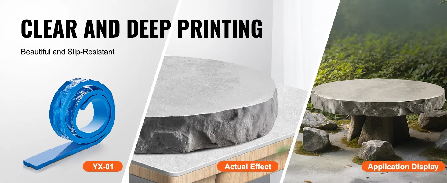 Natuurlijke en heldere structuur: de opvallende stijlpatronen imiteren echte steentexturen. De dikte van 30 mm (1,18 inch) zorgt voor een helder en diep textuureffect en voldoet aan de behoefte aan unieke markeringen.