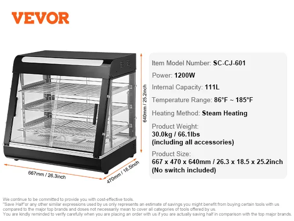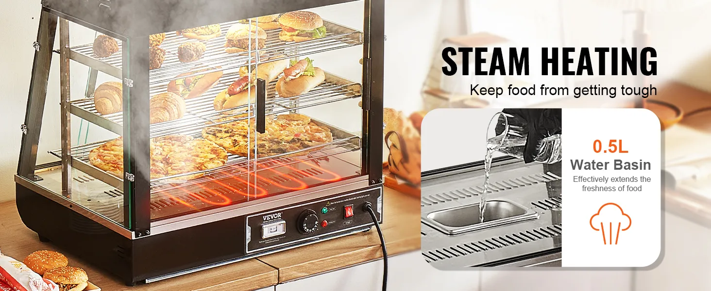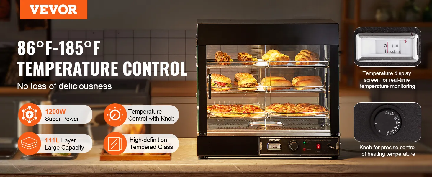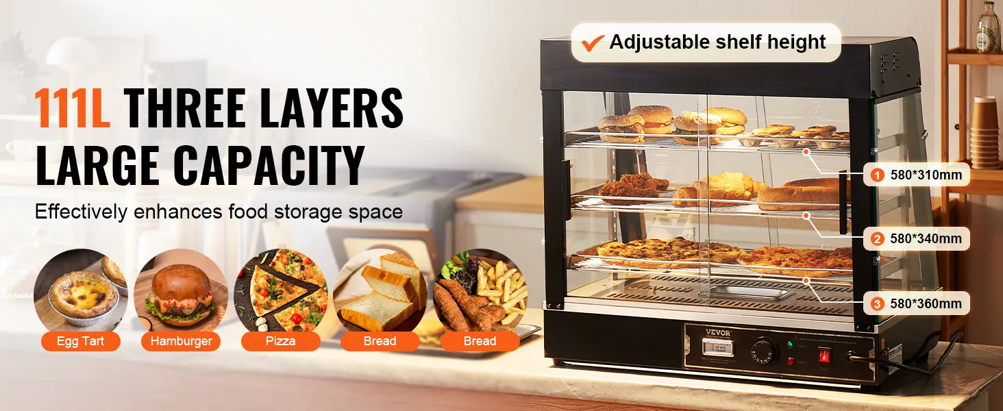 A food warmer display that integrates insulation and display functions is essential for every restaurant. Choose VEVOR's food warmer display to take your business to the next level.