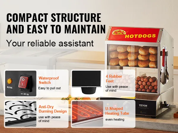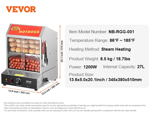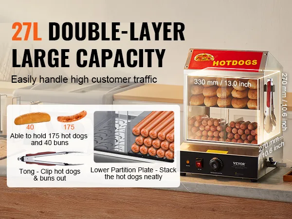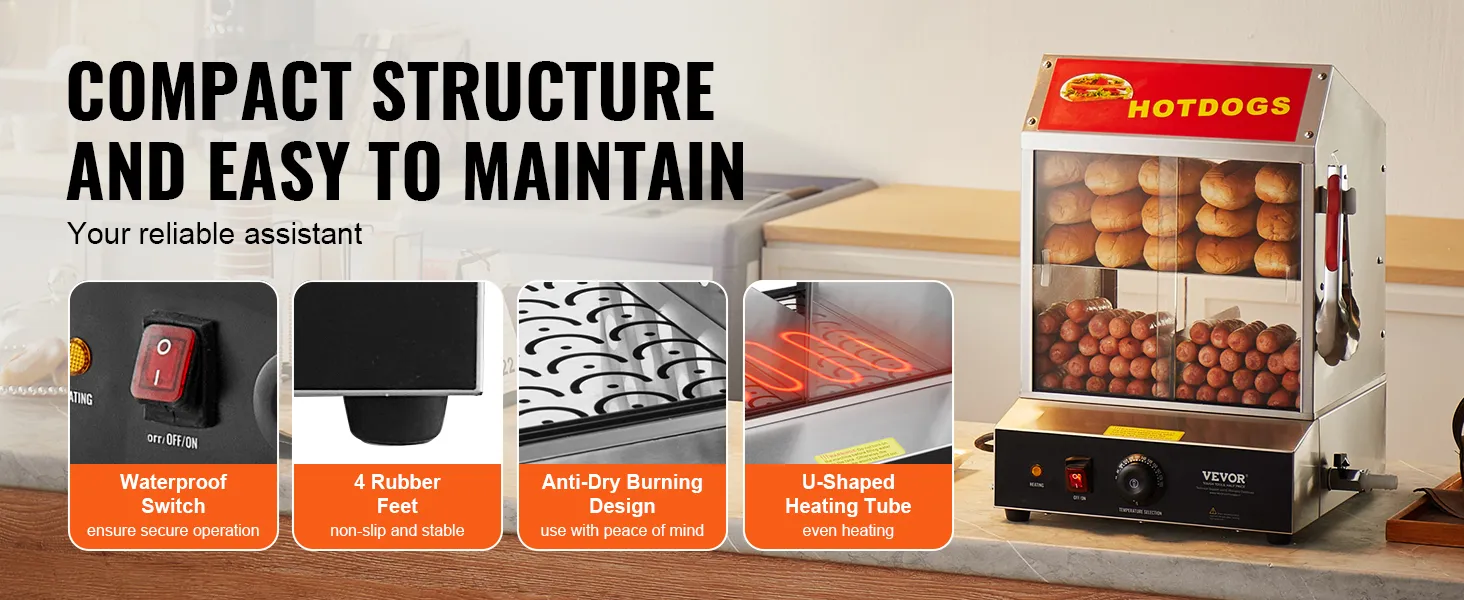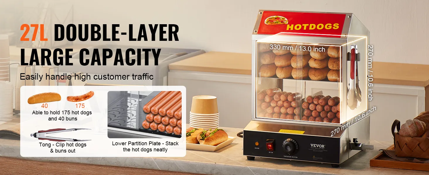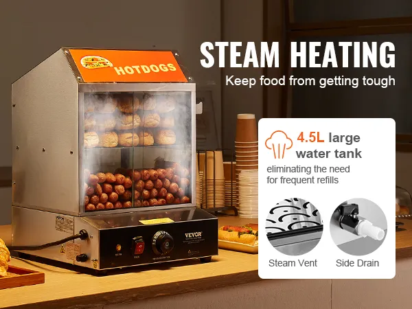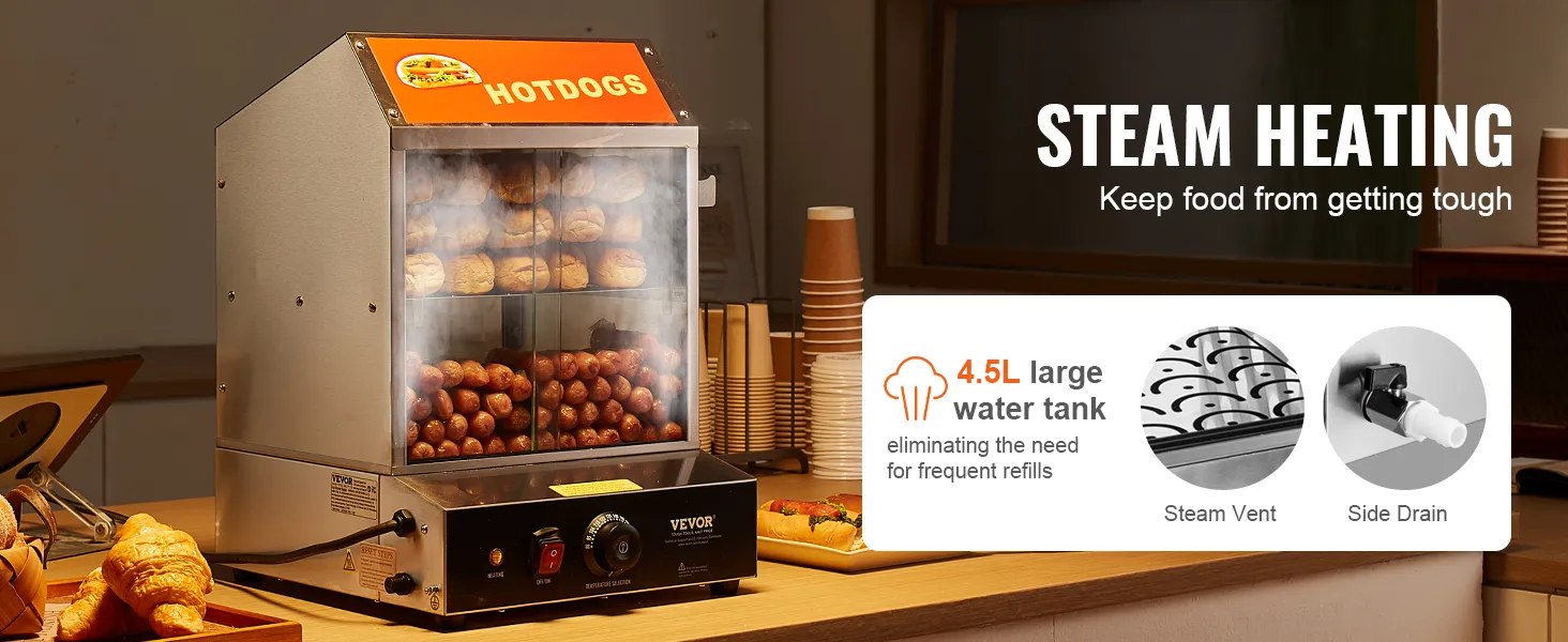 A hot dog steamer that integrates both insulation and display functions is essential for every restaurant. Choose VEVOR's hot dog steamer to elevate your business.