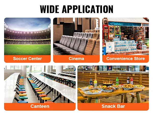 The hot dog steamer features 2 adjustable shelves, offering large capacity storage space for easy display of hot dog ingredients, widely used in stadiums, cinemas, convenience stores, cafeterias, and snack bars.