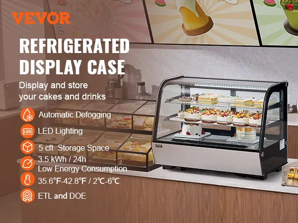 Deze gekoelde vitrine is ideaal voor bakkerijen, dessertwinkels, drankenmarkten en andere commerciële omgevingen.