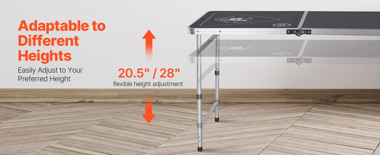 Adjustable Height: This beer pong tailgate table features two adjustable height settings of 20.5 inches and 28 inches. You can easily customize the height for optimal comfort and gameplay, ensuring a comfortable and enjoyable gameplay experience for players.