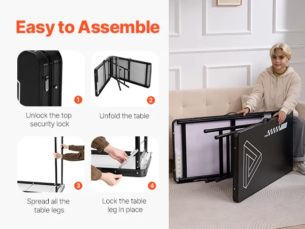 • Multifunctional Design: This foldable beer pong table features a multi-functional design, combining a sturdy aluminum frame with a durable MDF tabletop to ensure stability and reliability. Equipped with a security locking mechanism, it offers secure gameplay.
