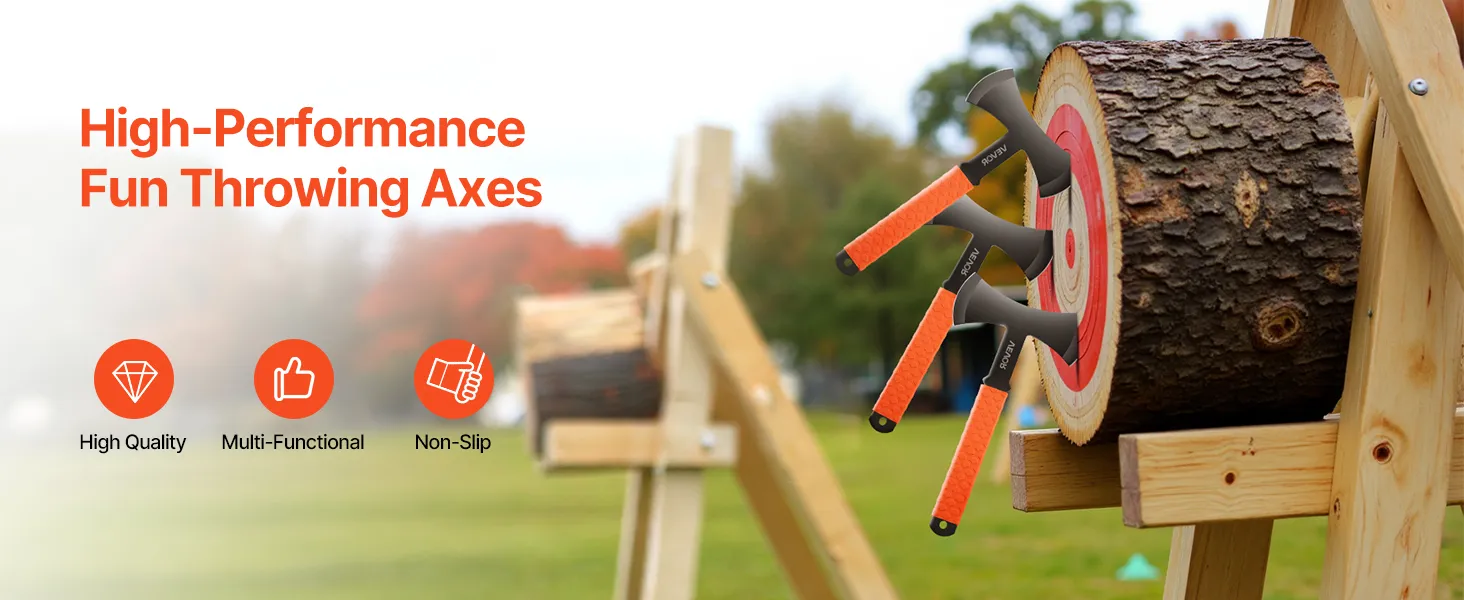 Deze multifunctionele werpbijlset is ontworpen voor thuisentertainment en buitenliefhebbers. De set beschikt over een uitgebalanceerde gewichtsverdeling, duurzame materialen en is draagbaar. Ideaal voor nauwkeurige worpen en leuke interacties op feesten, wedstrijden en buitenevenementen.