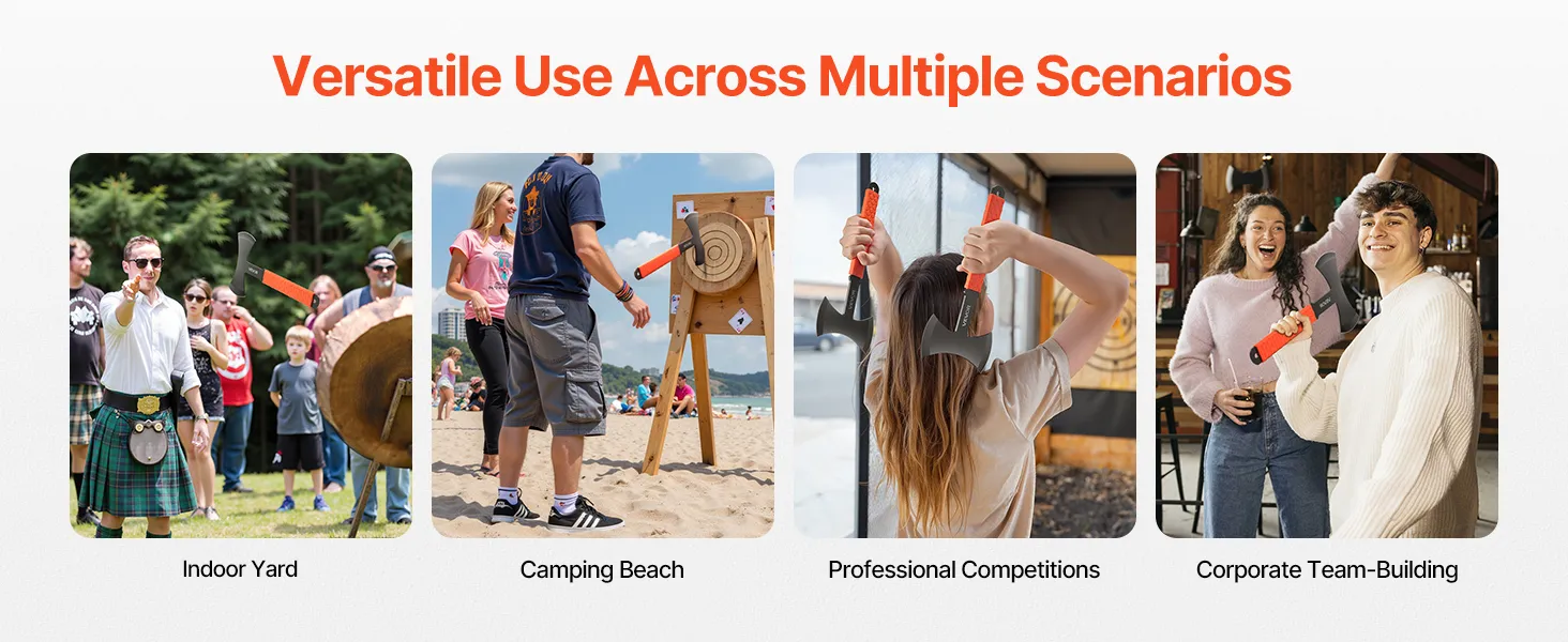 Klaar voor elke omgeving: de werpbijl is ideaal voor tuinfeesten, kamperen op het strand, teamspellen of indoor-opstellingen. Werkt perfect op gras, zand en meer – perfect voor entertainment, fitness en vriendschappelijke wedstrijden.