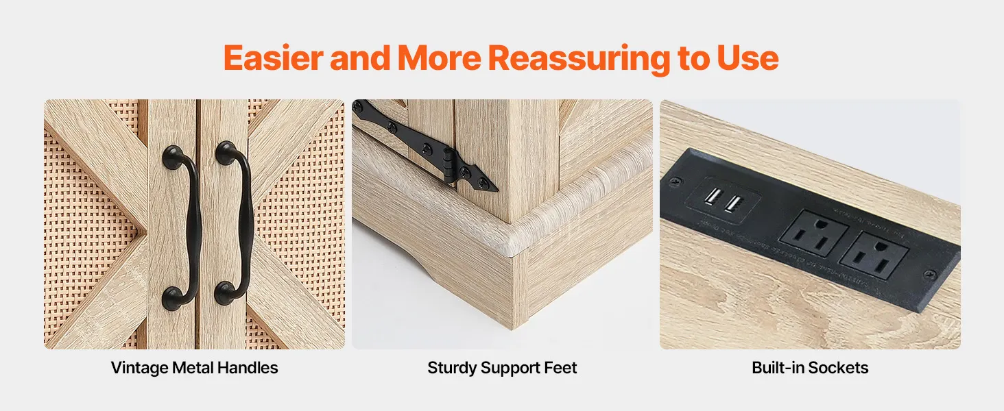 High Quality and Stability: Our wood coffee table is crafted with premium MDF and PE rattan cabinet doors, providing excellent durability and stability. This table's sturdy base can support up to 80 lbs (36.3 kg) on the tabletop and 60 lbs (27.2 kg) on the bottom layer, ensuring it holds various items securely without wobbling.