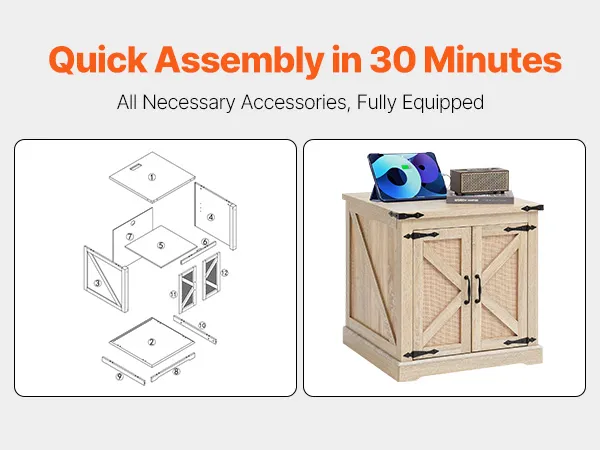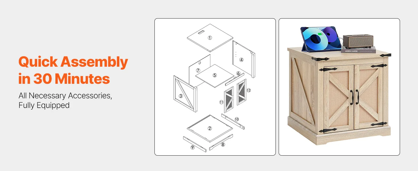 This natural coffee table has all the necessary accessories and detailed assembly instructions, allowing you to set it up quickly in 30 minutes.