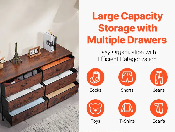 With multiple drawers, this drawer dresser provides plenty of space to organize your clothes, daily essentials, and more. Keep your home tidy and orderly by categorizing your belongings effortlessly.